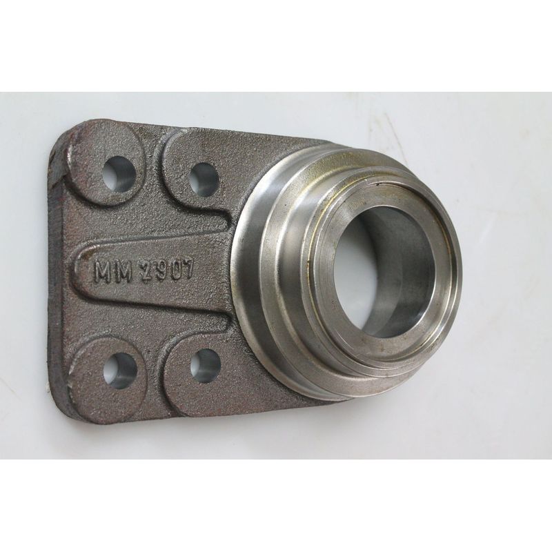 – Função técnica: Serve como ponto de apoio fixo para o eixo rotativo, garantindo o alinhamento correto do conjunto de transmissão. Possui cavidades para lubrificação via pino graxeiro e alojamento para retentores que impedem a entrada de terra e água nos rolamentos.