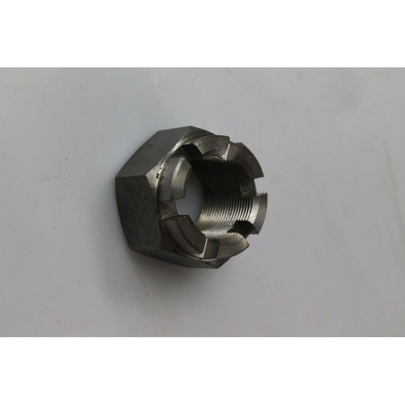 – Material: Fabricada em aço de alto carbono (classe de resistência elevada), com acabamento que permite altos níveis de torque e furações específicas (tipo castelo) para a passagem de cupilhas de travamento, evitando o desrosqueamento por vibração.